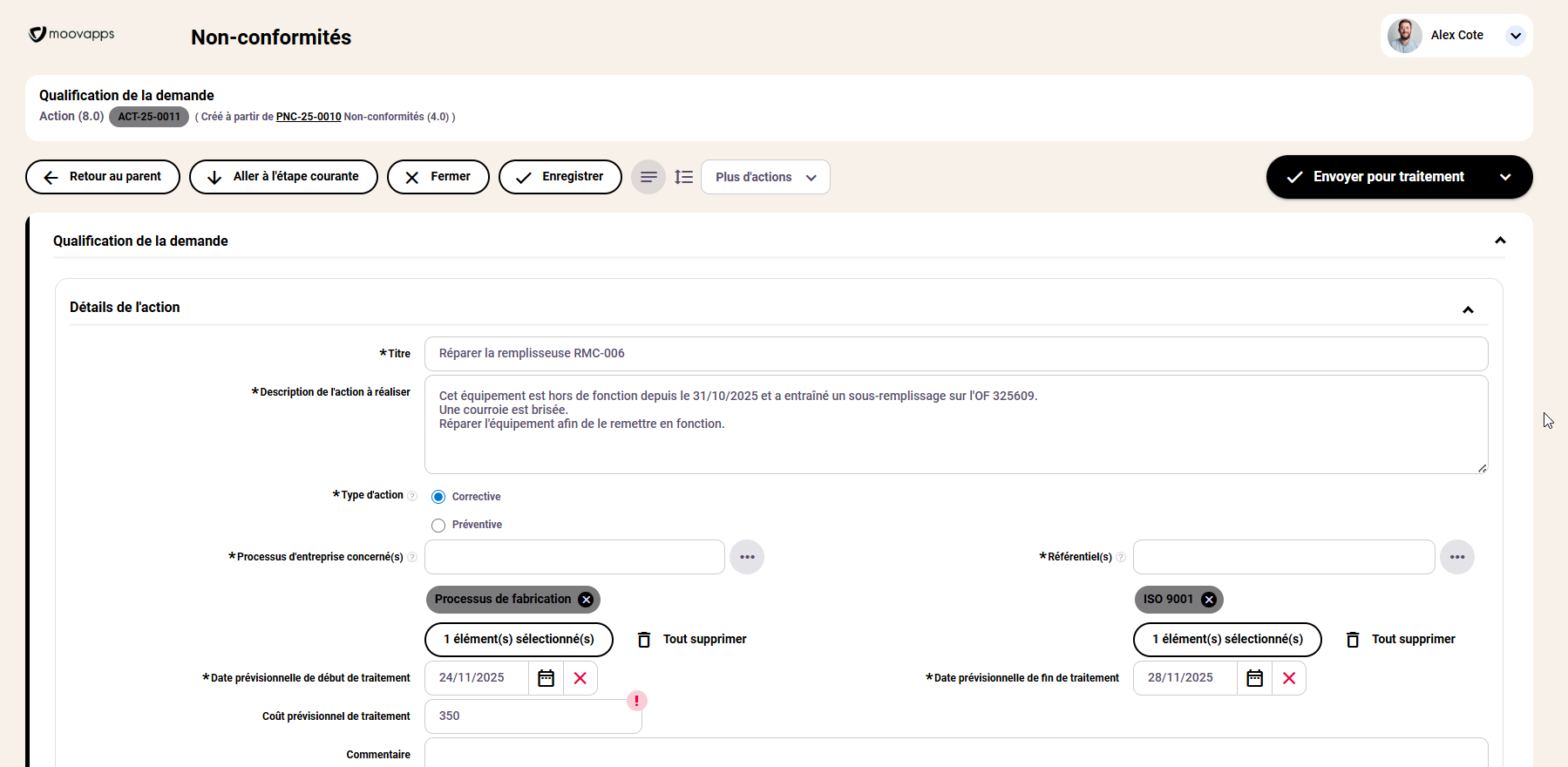 - Possibilité de catégoriser les actions par type et de personnaliser les étapes en conséquence (action corrective ou préventive, action mineure ou majeure)