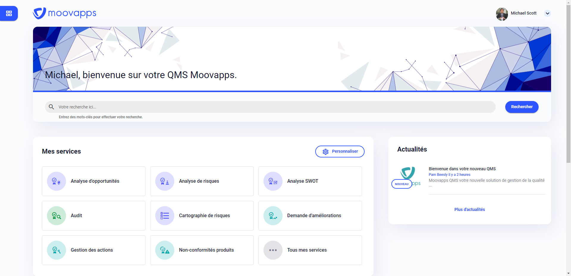 Moovapps GED, est le logiciel leader en dématérialisation et la centralisation de document. Il vous permet une complète organisation documentaire, répondant aux plus grandes normes en vigueurs (GFSI, ISO, HACCP, etc…), tout en agissant comme dynamiseur collaboratif auprès de votre écosystème en leur permettant d’interagir et d’échanger en temps réel.